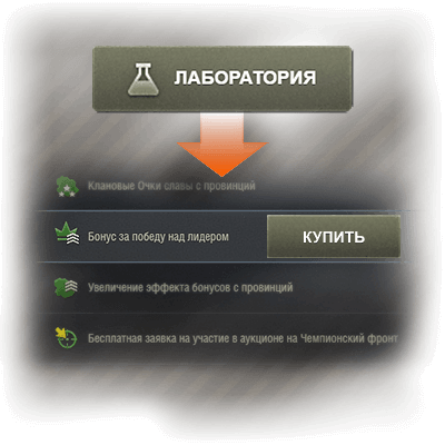 Клановые Очки славы в боях Бонус повышает на указанный процент количество клановых Очков славы, получаемых за участие и победы в боях. Действие бонуса суммируется с действием технологий. |