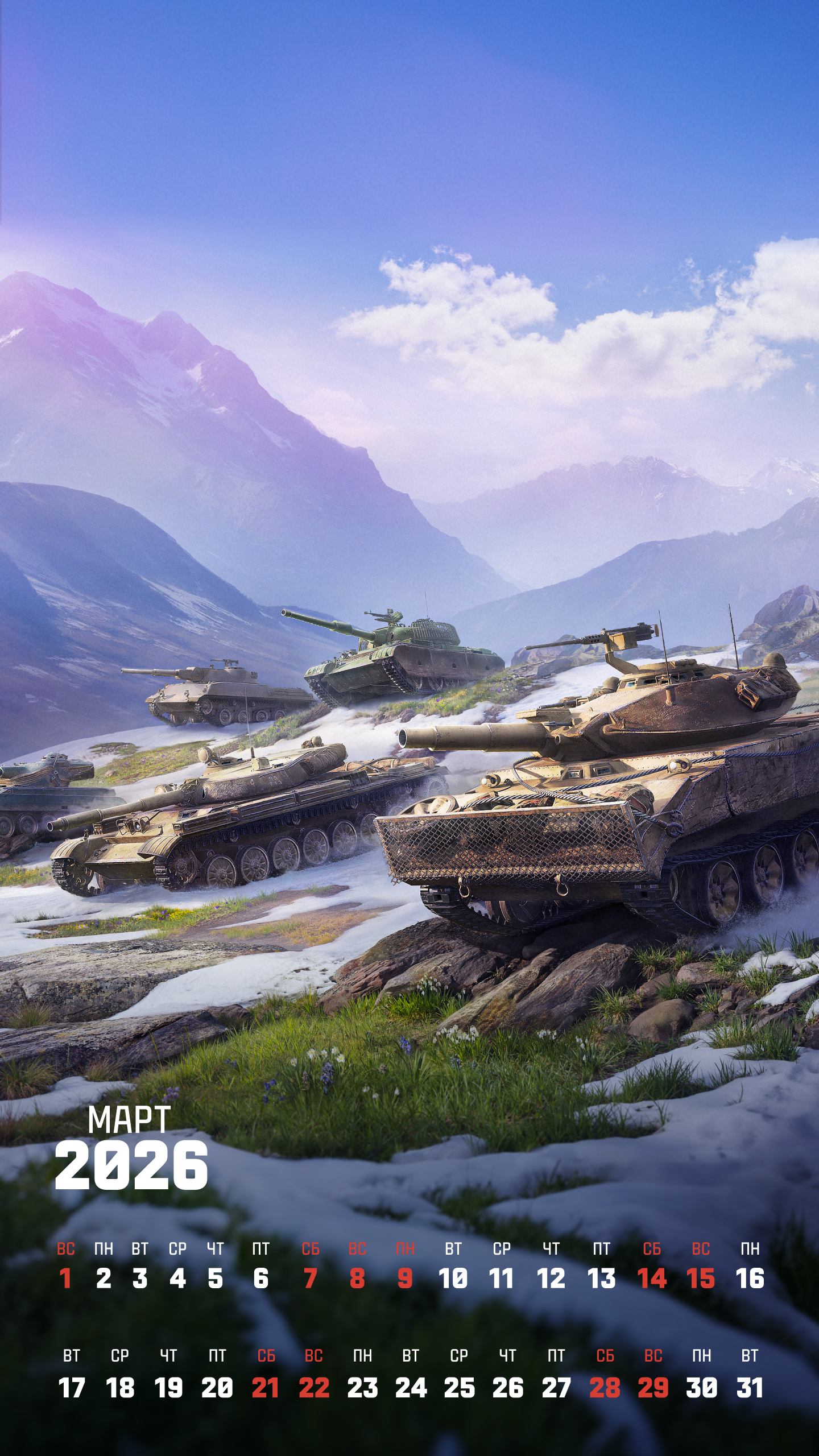 Обои с календарём на март 2026