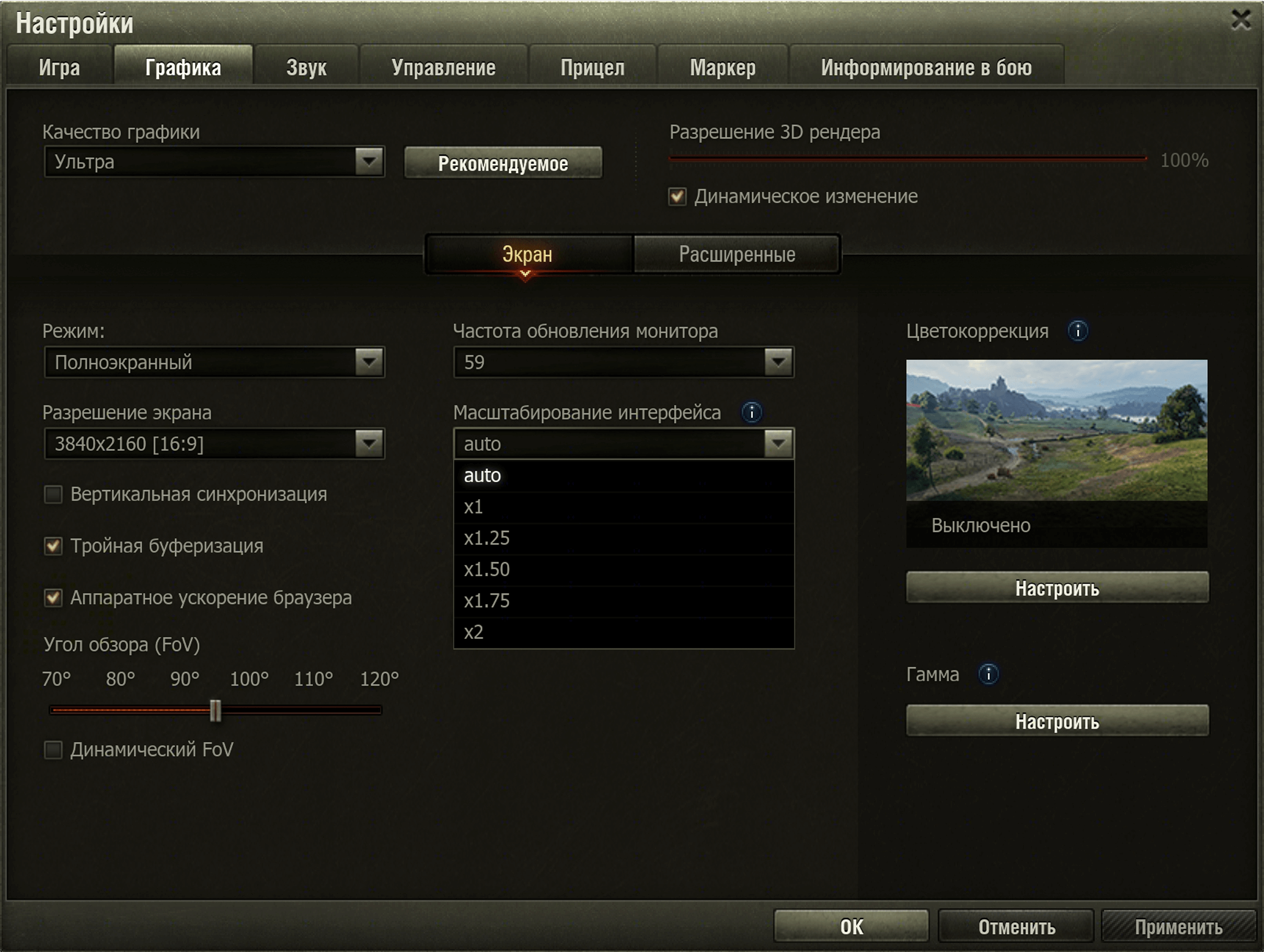 Клиент игры сам предложит оптимальный масштаб, но при желании вы сможете выбрать другой вручную. Чем выше разрешение, тем больше доступных вариантов.