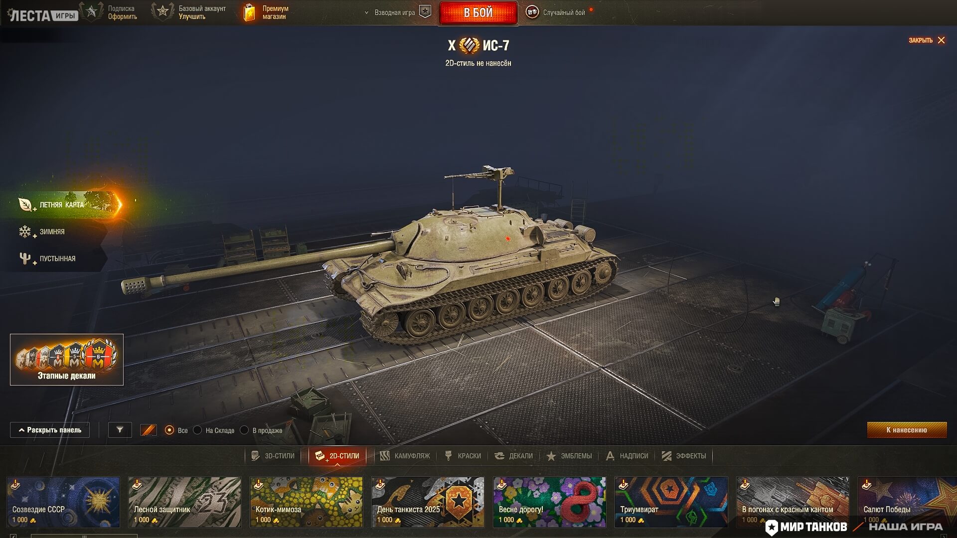 Кстати, о нанесении декора. Вот ещё одно удобное новшество — все элементы, которые ты выберешь для танка, можно будет применить сразу для всех типов карт. Наконец-то!